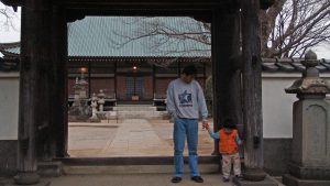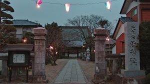 「桜のお寺だね、その先の角を右へ曲がると暫く先にぼんぼりが