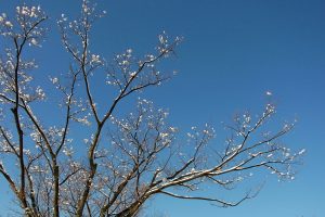 公園の木に雪の花、
