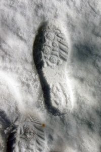 雪の音ではありませんよ、氷を引っ掻いて歩く道を確保するのが