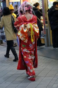 その光の下を歩く人の姿はまるで百年前の明治が歩いているようで、