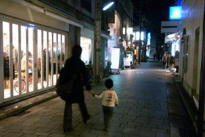 路地をまがって姿が見えなくなりました。