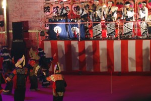 笛、大太鼓、小太鼓、三味線、鼓、鉦そして地口と呼ばれる歌い手が