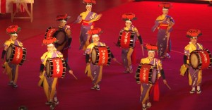 掛け声とともに太鼓の音が響きわたる、