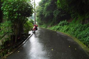 目の前の全てが湿り気を帯びた道を歩いていると、