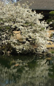 本坊でお茶をいただくと、目の前に桜、それも満開ではないですか、