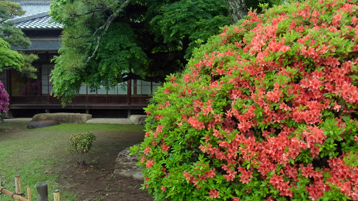 高崎川や下総台地を借景に松、百日紅、躑躅等を