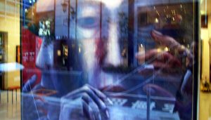 外の景色が見えますが、向こう側からはただのショーウインドー