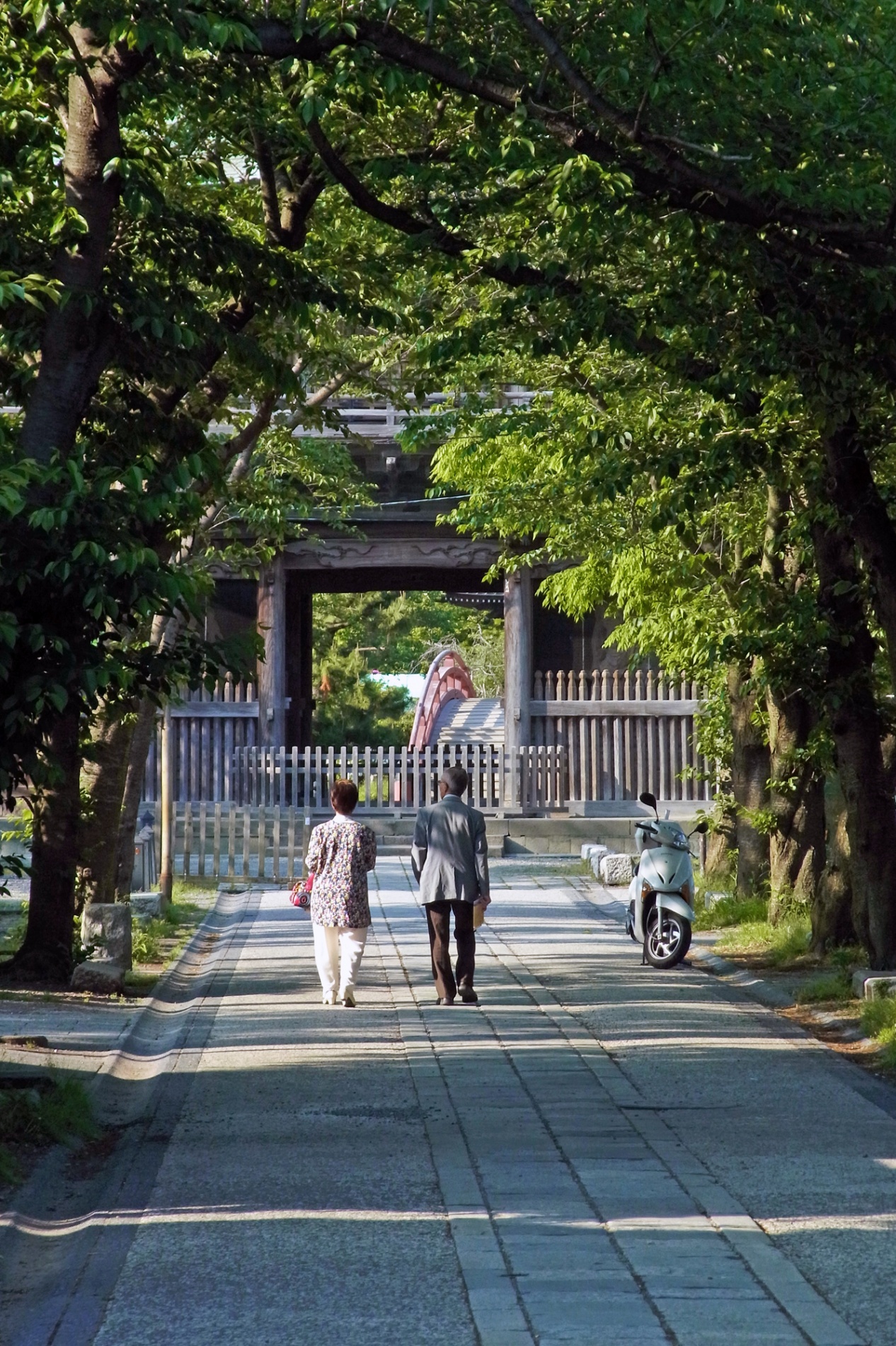 山門を潜ると仁王門に向かって桜並木が続いている、
