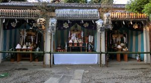神輿庫の明かりが消され、宮司さんにより、三基の神輿に神の御霊が