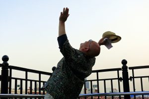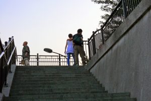 間隔を空けて階段を登ると、それまで川を眺めていた爺様がいきなり
