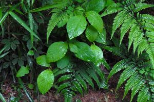 鬱蒼と茂る雑木林の中にエゴの木の花を見つける、