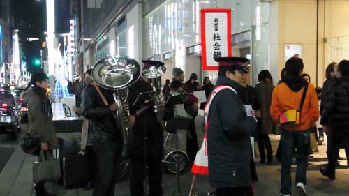 今年も銀座の街頭に救世軍の社会鍋が登場した。