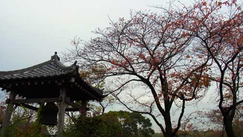 秋の名残の紅葉(もみじは)は冬の朝風に