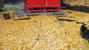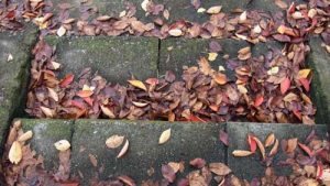 一晩で降り積もった落ち葉の上に夜来の雨、