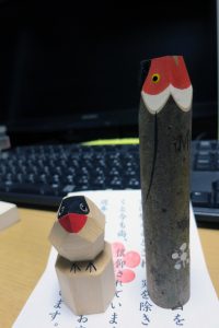 (左 牛天神の鷽 右 湯島天満宮の鷽)