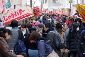 まるで初詣みたいな賑わいに、露店のオヤジさんたちも