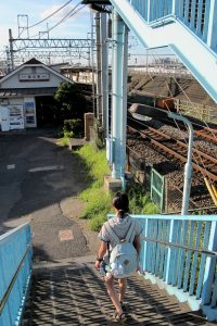 いつも上り下りする駅への階段に目をやる、
