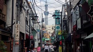そっと見上げた東の空にスカイツリーが輝いていますぜ