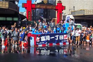 神輿を最初に復興させたという心意気が夏の大空へ