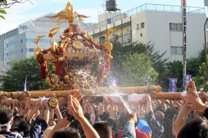 そんな神輿担ぎの心情は関係無しに、豪快な水掛けが始まった。