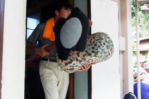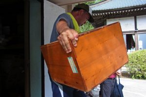蔵に納められている面や道具類を運び出す、