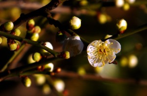 初梅の紅梅の香りをかきながら赤鳥居をくぐり、太鼓橋を渡ると