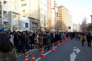 その行列のほとんどは、仕事始めの背広姿の大群衆でございますよ。