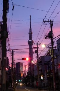 も一度振り返ると、路地裏の先にあの鉄塔がネオンをつけはじめていた。