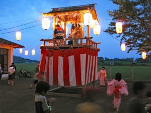 小さな鎮守の杜のヤグラの上では、「前原音頭」が