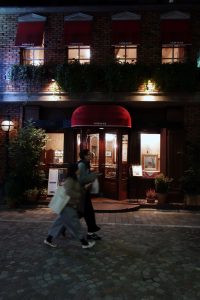 ビルの谷間の路地の角を曲がると