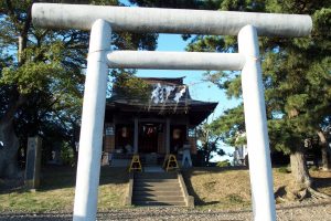神社の前には大きく高い幟が風になびいていた。