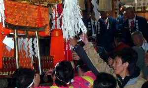 その時、周りを埋めていた人々が神輿に飾られていたシデに