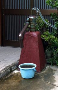 井戸水で顔を洗ってると足元でネコが顔を撫ぜ廻す、