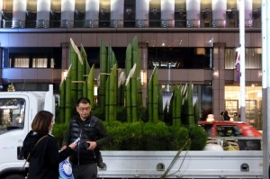 門松を満載したトラックが店の前に横付けされると、あれよあれよと